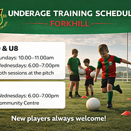 Underage Training Schedule – ForkhillU10 & U8 🗓 Sundays: 10.00–11.00am 🗓 Wednesdays: 6.00–...