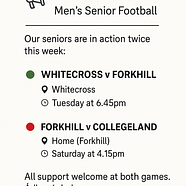 📣 Fixture Update – Men’s Senior FootballOur seniors are in action twice this week:🟢 Whitecross...